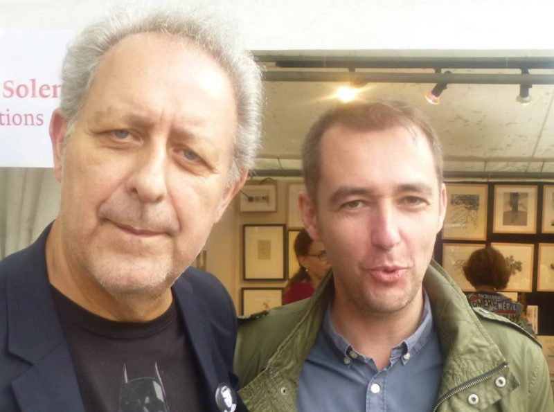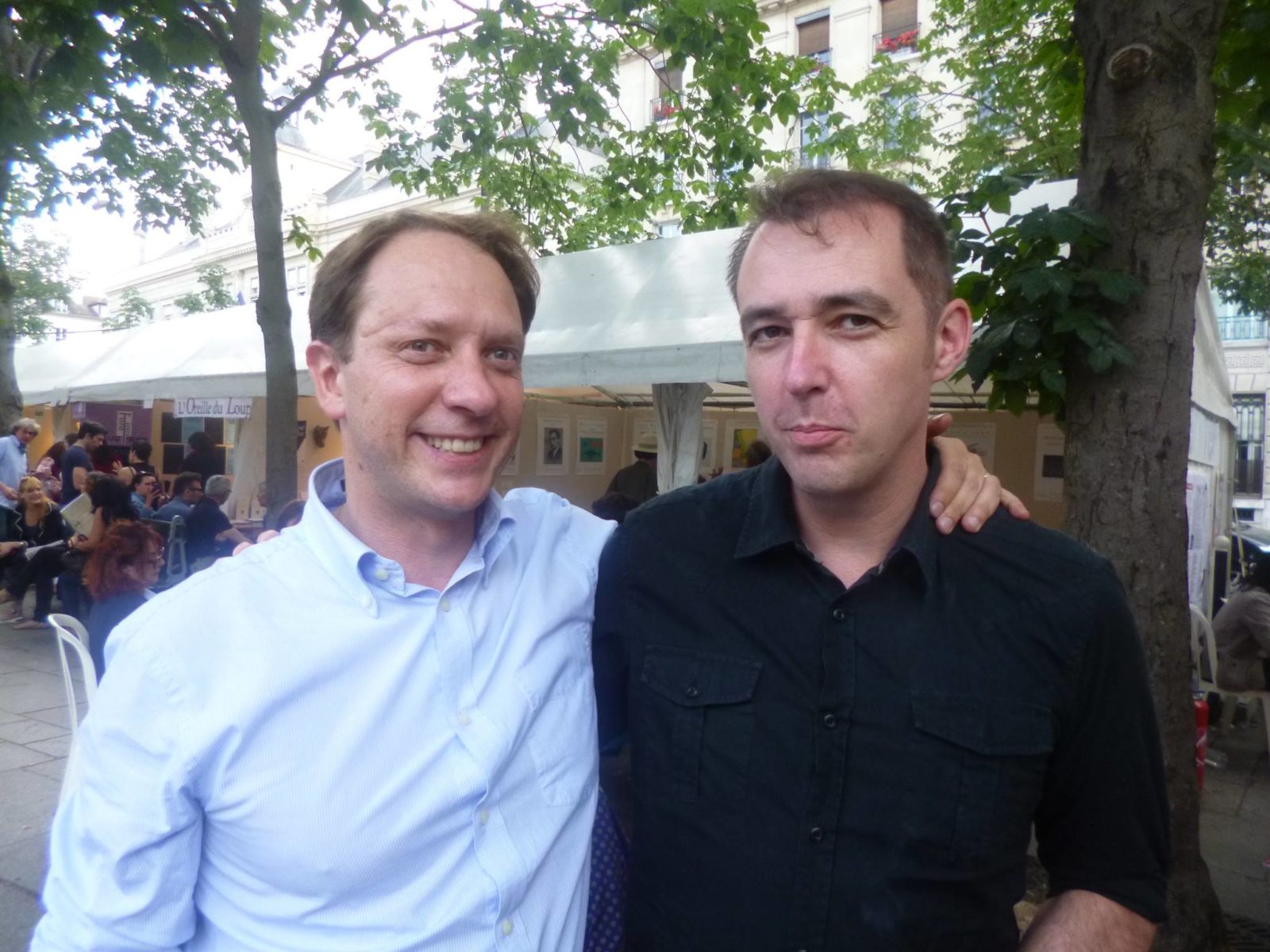 Réginald Gaillard, fondateur des éditions Corlevour, et Nicolas Rozier au Marché de la Poésie 2016 (crédits : MHC)