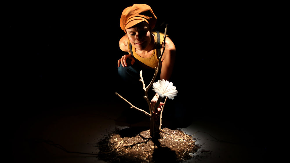 Farceuse, elle joue avec les matériaux, s’émerveille de ce qui l’entoure et dialogue avec la nature. Sans cabotinage et avec une sobriété bienvenue, Émilie Chevrier, à partir d’un travail de clown jamais appuyé, parvient à créer un vrai lien avec les spectateurs et à unir la salle pour atteindre des sommets d’émotion.