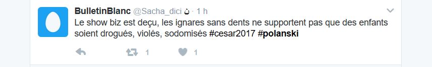 Le 18 janvier, Alain Terzian annonce le nom du réalisateur Roman Polanski pour la présidence des Césars 2017. Coup de tonnerre sur la toile ! Les twitteurs et différentes associations féministes se déchaînent, criant à la « culture du viol » et à « l’impunité des puissants ». Face au tollé que déclenche l’annonce, et malgré le soutien de personnalités importantes, Roman Polanski vient d’annoncer qu’il renonce à sa participation, « profondément meurtri ».