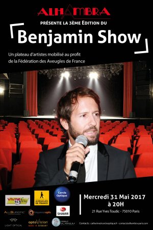 Après L’Archipel, puis Trévise, c’est le théâtre de L’Alhambra qui accueillera la 3e édition du Benjamin Show, le 31 mai prochain. Dans l’esprit de nouveaux défis, Benjamin Zeitoun a visé plus haut cette année en doublant la capacité d’accueil (680 places). « Nous sommes presque complets, indique-t-il, ravi de ce succès grandissant, d’autant que la soirée sera retransmise pour la première par une radio, Vivre FM. J’ai pensé cet événement en me mettant à la place de chacun. Je souhaitais que l’association sensibilise plus de personnes à sa cause et que des artistes en devenir aient l’occasion de jouer dans de plus belles salles. »
