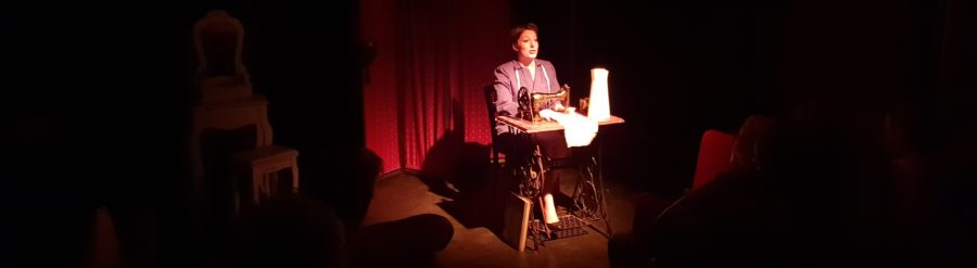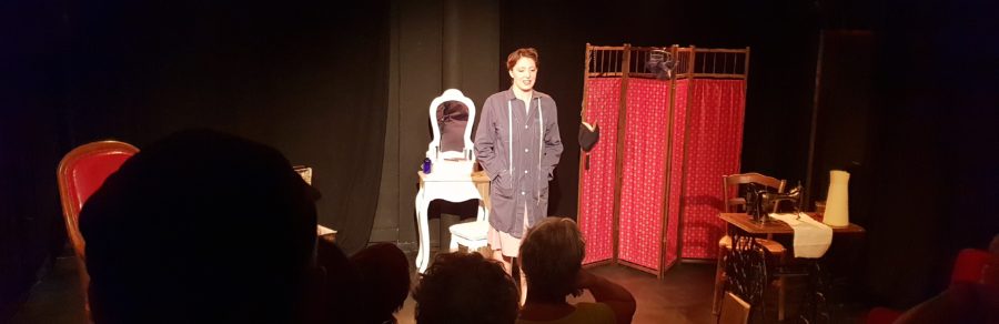 Violette Erhart ne sort malheureusement pas indemne d’une telle platitude. Et pourtant, sans quoi cette critique n’aurait jamais vu le jour, son jeu est travaillé ; plus encore, il est évident que pareil texte est loin d’être adapté à son talent. Elle mériterait tellement mieux ! Elle interprète tous les personnages, passant de l’un à l’autre, d’un accent à une mimique, avec une belle aisance. Elle s’amuse à croquer chacun, d’un ton volontairement caricatural, efficace quoique rudimentaire.
