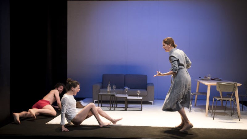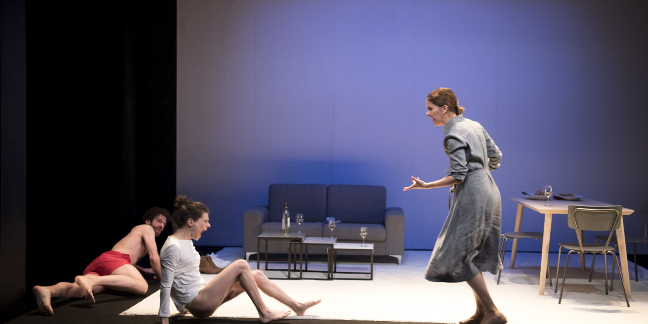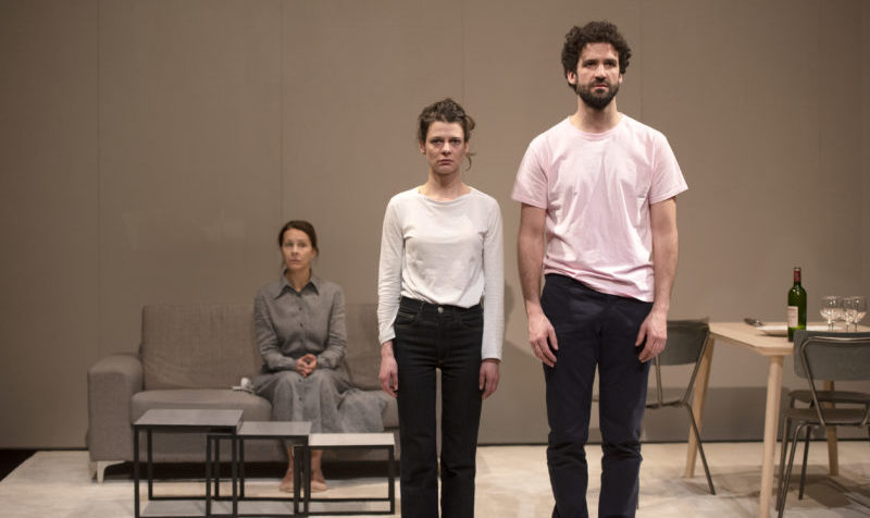 Pauline Bayle a choisi d’adapter elle-même (sans l’aide de l’auteure) et de mettre en scène le roman de Leïla Slimani. Hormis quelques faiblesses qui tiennent à la difficulté de l’exercice (transformer un roman en pièce de théâtre) bien plus qu’à la mise en scène, le résultat est prodigieusement juste et efficace. Prodigieusement car Pauline Bayle représente et incarne le basculement dans le tragique et l’horreur de cette famille normale avec une économie de moyens, une humilité même, qui sont la marque du grand théâtre. Point de vidéos envahissantes cherchant à habiller et cacher la misère, point d’illustrations sonores agressives mais une sobre scénographie (un canapé et une table basse, une table et quelques chaises) montrant un intérieur banal et rassurant, et surtout une mise en scène pleine de grâce malgré le tragique destin dont elle montre la progression. Mise en scène fluide, glissée, organisée en un jeu de relais et de subtiles métamorphoses qui repose tout entier sur l’admirable aisance des comédiens.