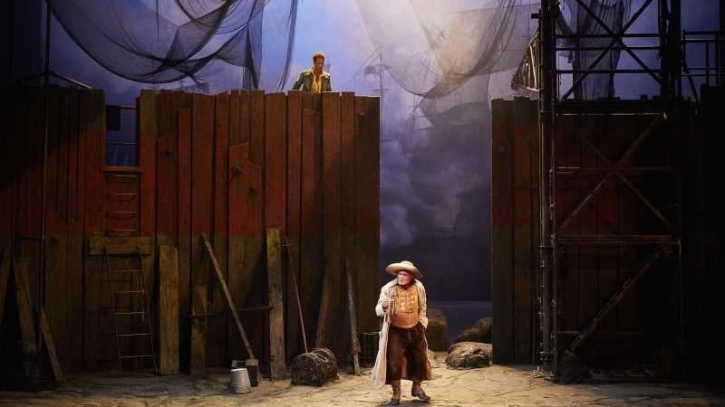 Les trois coups du brigadier coïncident avec la puissante corne de brume du navire qui ramène les deux pères burlesques, Argante (Gilles David) et Géronte (Didier Sandre), à Naples. Nous sommes dans le port, celui des filets et des cages rouillées, celui des grues et des palissades rougies par le temps, celui des maraudes et du brigandage quotidien.