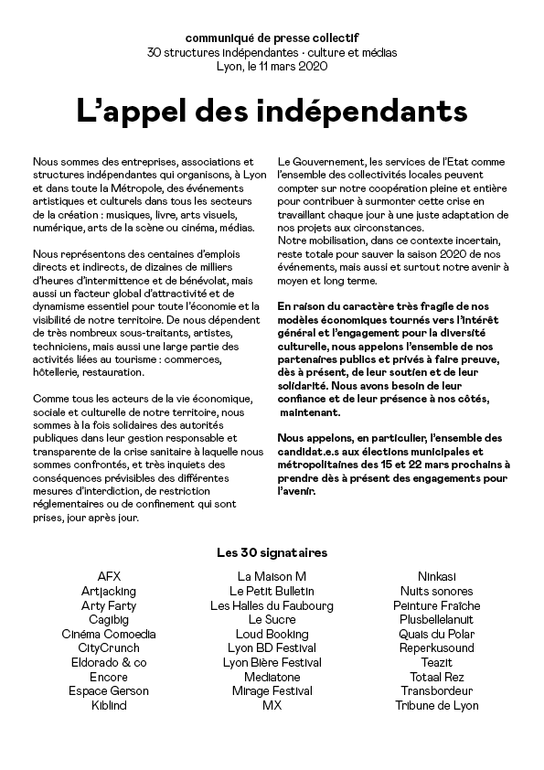 Coronavirus : l’appel à l’aide de 30 structures indépendantes à Lyon