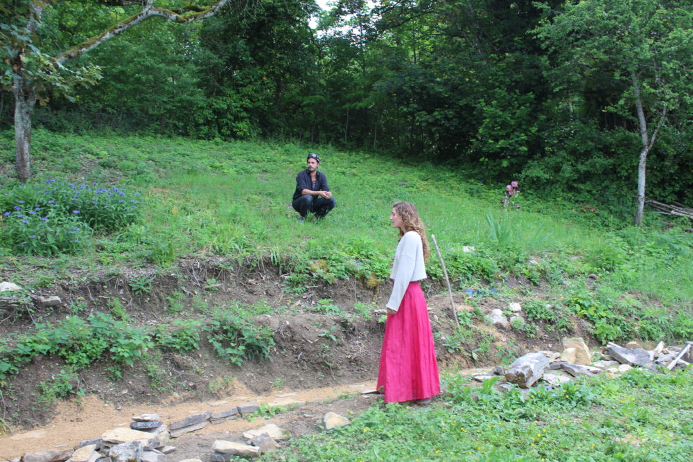 Baudoin Cristovéanu et Sophie Foster dans leur théâtre de verdure (crédits : Morgane Macé / Profession Spectacle)