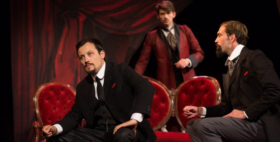 La mise en scène de Raphaëlle Cambray, pensée autour de trois espaces – le bistrot « L’absinthe », le salon de Lucien Guitry et le bureau de Jules Renard –, porte aussi efficacement sa trame. Elle réussit, à l’appui du jeu formidable des cinq comédiens, à nous plonger dans la réalité de ces artistes de la Belle Époque. L’énergie et la générosité de ces derniers nous accompagnent jusqu’au salut final, qu’un fin mot d’esprit de Maxence Gaillard (Jules Renard) vient conclure.