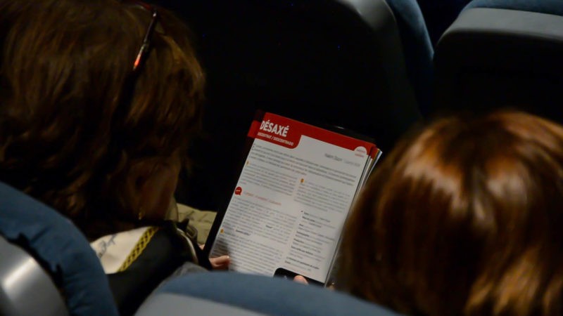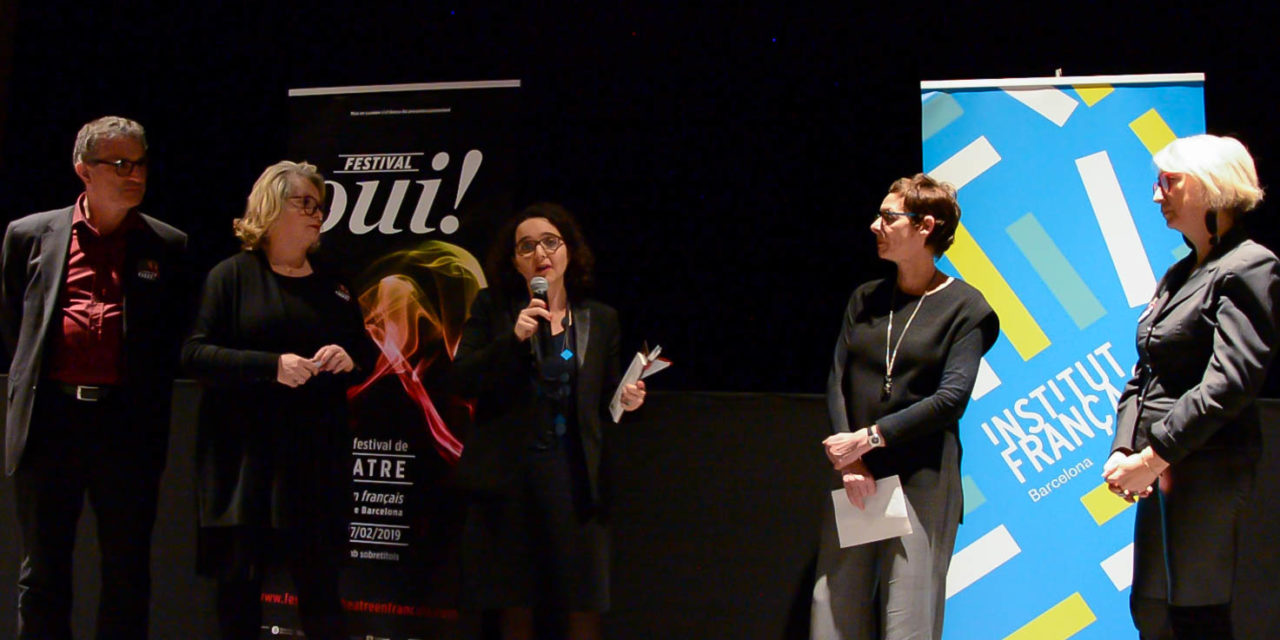 Dans l’auditorium de l’Institut français à Barcelone, le public s’est donné rendez-vous, nombreux : ça parle en français, surtout, bien sûr, mais aussi en anglais, en castillan, en catalan… Très vite la salle est pleine, il faut ajouter des sièges, encore, encore. Près de trois cents personnes assistent ainsi au lancement du troisième festival de théâtre en français à Barcelone, devenu cette année le festival OUI !.