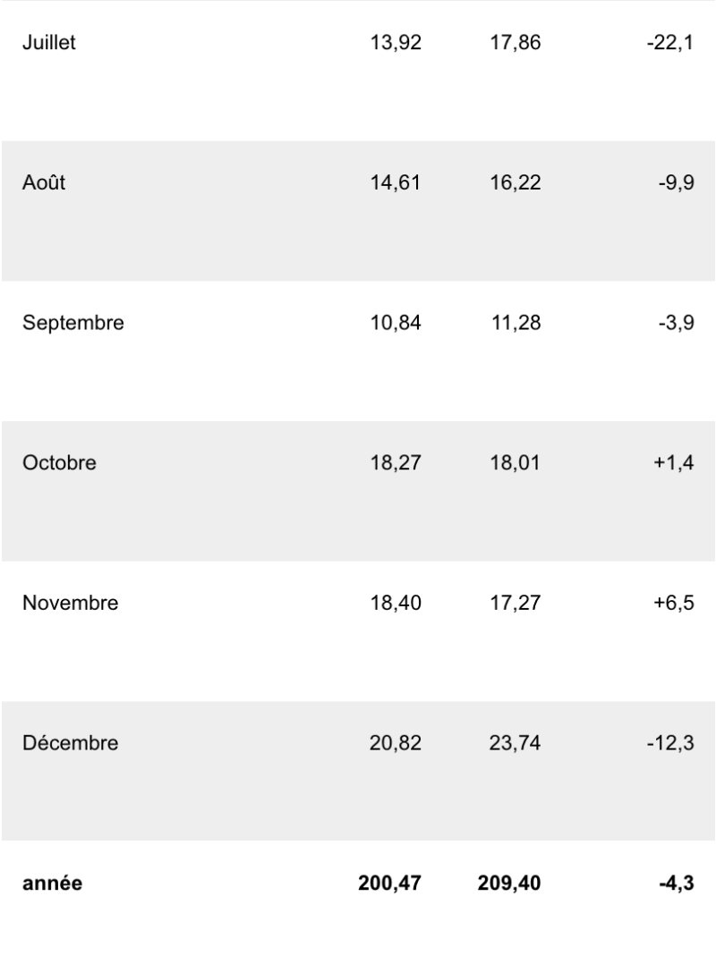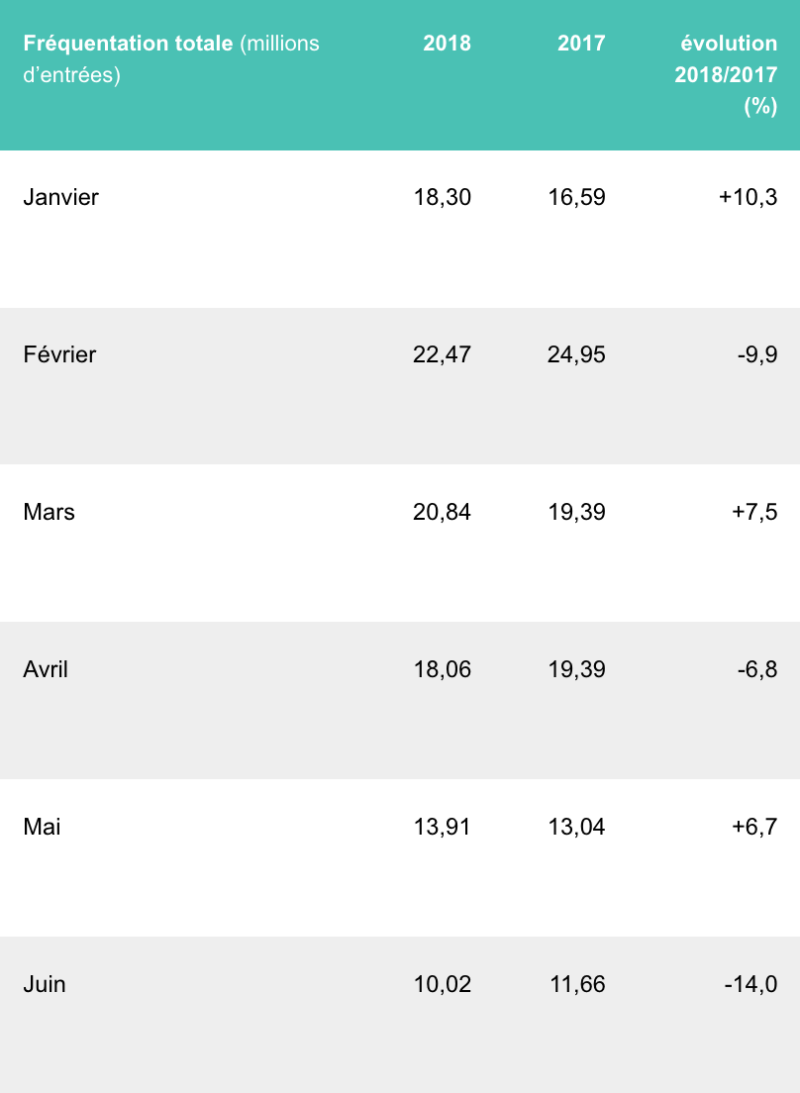 Si la fréquentation au mois de janvier a augmenté (+10,3 %), les mois de juin, juillet et décembre ont en revanche été considérablement en perte de vitesse par rapport à 2017, avec respectivement -14 %, -22,1 % et -12,3 % de fréquentation.