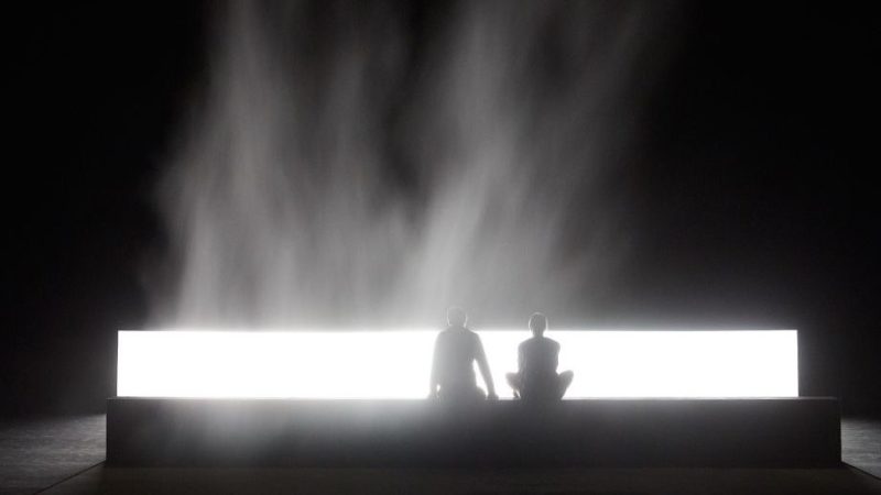 Le jeu de lumière lui-même, signé Sarah Marcotte, accentue les contrastes, dès lors que la salle dans laquelle sont assis les spectateurs s’éteint progressivement, usant même de teintes orangées – notamment après le pacte ratifié par le frère et la sœur – pour fermer tout horizon, pour recouvrir la page blanche qui ne permet dès lors plus de potentialités qui ne soient déjà irrévocables et funestes. Une bande blanche orangée en fond de scène révèle sanguinairement le crépuscule de ces jeunes héros, à qui l’avenir était censé appartenir avant que tous les accords ne soient irrémédiablement entérinés.