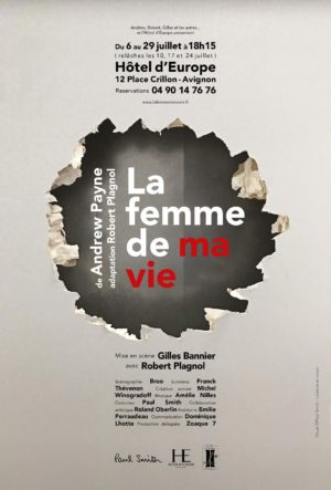 Nous l’avons écrit précédemment : Robert Plagnol se saisit à nouveau d’un texte d’Andrew Payne, après Synopsis et Squash, après En réunion, avec Patrice Kerbrat et Swann Arlaud, après Le Plan B, mis en scène par Michel Fagadau, avec Aure Atika, Natacha Régnier et Thomas Chabrol. Pour cette nouvelle pièce, La femme de ma vie, que nous avons vue dans un salon du magnifique Hôtel d’Europe à Avignon, il collabore avec le réalisateur Gilles Bannier, auteur notamment d’Arrêtez-moi là, sorti il y a deux ans, avec Reda Kateb, Léa Drucker et Gilles Cohen.