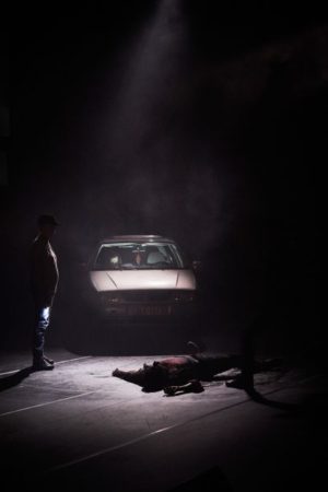 L’autre point d’achoppement – et non des moindres – de La Reprise est sa violence inouïe. Violence sociale, violence de classes, d’abord. Pourtant, le spectacle évoque à plusieurs reprises le contexte socio-économique difficile de Liège. Dès le prologue, Johan Leysen souligne l’écart géographique entre Ihsane Jarfi et ses tueurs – le centre-ville pour le premier, la banlieue pour les seconds –, manière de rappeler qu’au meurtre homophobe s’ajoute peut-être une rancœur sociale. Puis, les frères Dardenne, réalisateurs belges connus pour leur cinéma dit social, et leur intérêt pour des personnages de marginaux ou en situation de précarité, sont évoqués de façon récurrente. Leysen explique que si leurs tournages constituent l’une des rares activités de la région – dont ils sont originaires –, ceux-ci sont connus pour embaucher des amateurs en les maintenant dans des rôles auxquels leurs origines et leur physique les assignent : un homme d’origine arabe jouera un arabe, etc. Une critique illustrée lors des auditions, lorsque Suzy Cocco ou Tom Adjibi évoquent des expériences de figuration chez les Dardenne. Par les rôles proposés à Suzy Cocco, Fabian Leenders et Tom Adjibi, La Reprise offre une réponse à cette critique des Dardenne, puisque le spectacle pousse chacun de ces interprètes dans ses limites et réalise un excellent travail d’acteur. Pour autant, le déplacement n’est que partiel et chacun se voit bien attribuer un rôle en accord avec son physique (arabe pour Tom Abidji, assassin pour Fabian Leenders). Ce choix suscite un malaise d’autant plus grand qu’il semble ici fait en conscience. Là où nombre de projets théâtraux revendiquent la présence à égalité de professionnels et d’amateurs, La Reprise convertit, là encore, ce choix en théâtre, le spectacle met en scène cette différence. Ainsi la scène de nudité entre les deux parents (Leysen et Cocco) provoque-t-elle une gêne, l’embarras de Cocco étant palpable. Un gouffre sépare les interprètes professionnels des amateurs : cette hiérarchie est énoncée par les séquences d’audition, et les amateurs sont instrumentalisés par le dispositif de la reprise.