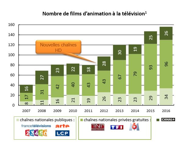 Et tout ce travail n’a pas été effectué en vain ! Les films d’animation sortis en salles ont généré plus de 204 millions d’euros de recette et réalisé 34 millions d’entrées. Ce taux de fréquentation est le plus haut enregistré depuis 10 ans au moins. Quant au petit écran, il propose une animation audiovisuelle à 50,5 % française. Ce sont les chaînes TNT/TNT HD qui s’offre la part du lion (74 %), contre seulement 26 % pour les chaînes historiques. L’étude du CNC observe néanmoins une poussée sur France 5, Canal+ et M6. Les tout-petits et les 10-14 ans incarnent le public le plus friand de cette production diffusée sur petit écran.