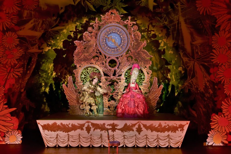 Ça claque, ça brille, ça éblouit… L’ombre multicolore de Michel Fau plane. Le faste des décors acidulés et la pompe des costumes baroques de Christian Lacroix tombent dans l’excès et fait perdre la poésie, le lyrisme et parfois même la charge humoristique. Divertir avec panache est le credo de cette recréation. C’est déjà pas mal par les temps qui courent. Mais finalement, il y a beaucoup de conventionnel dans cette surcharge fantaisiste. L’interprétation aurait pu dynamiter des thèmes éculés de l’opéra-comique, comme l’arrivisme ou le mariage. La dynamite est un pétard mouillé.