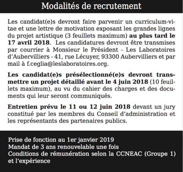 Les Laboratoires d’Aubervilliers recrutent leur directeur (f/h)