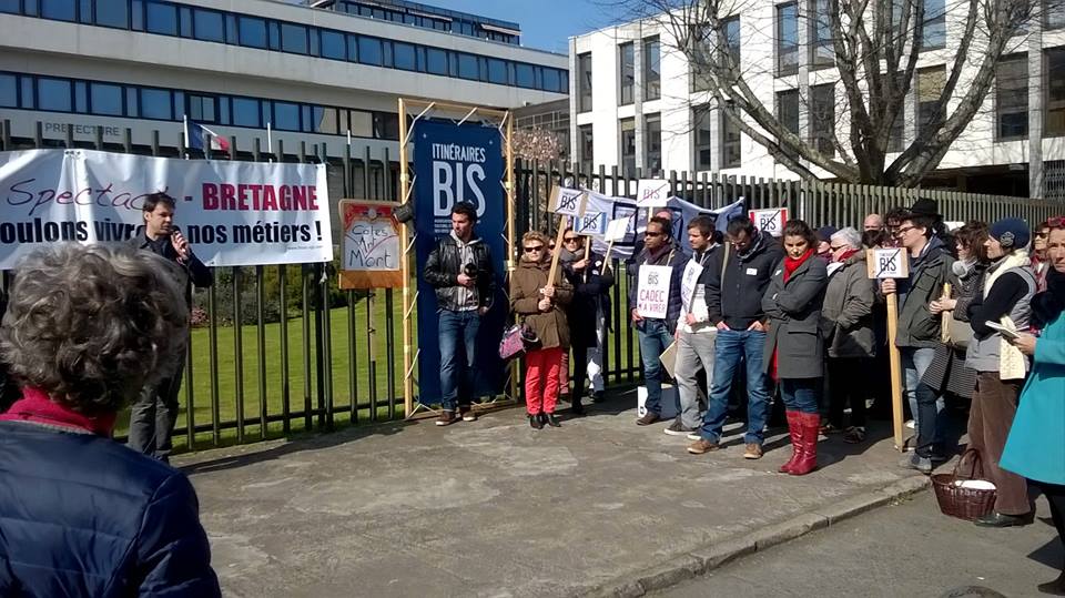Lundi 14 mars dernier, ils étaient 250 personnes à s’être rassemblées devant le Conseil général des Côtes-d’Armor à Saint-Brieuc. Artistes, directeurs de salles de spectacle ou de théâtre, associations culturelles… tous réunis sous une même bannière au jeu de mots tristement cynique « Côtes d’Art-Mort ». Pendant ce temps, dans le bâtiment à quelques mètres de là, l’assemblée départementale par la voix de son président Alain Cadec s’apprêtait à entériner le vote du budget 2016. Un budget dicté comme partout par la chasse aux économies. Au total, seize millions d’euros de moins que le budget 2015 sont actés sur une enveloppe globale de 646 millions. « Indispensable », assure l’exécutif.