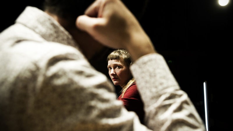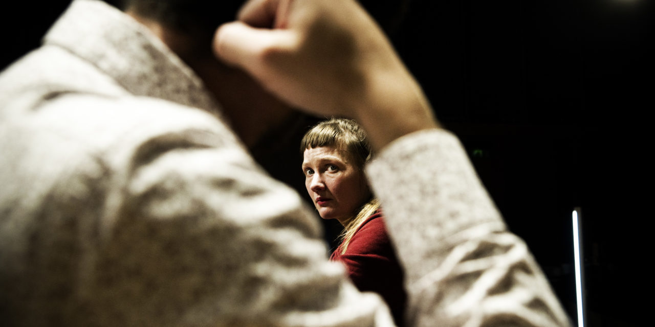 La mise en scène montre un Liam (Martin Legros) sur le fil, nerveux et tremblant : on ne sait jamais s’il va basculer dans l’ironie ou la violence mais on sait qu’il peut basculer à tout moment et qu’il est tout entier symptôme et réserve de violence. Le personnage d’Helen (Céline Ohrel) est lui aussi tout en tension, tension extrême qui dit toute la force et l’énergie déployées pour faire le grand écart entre deux mondes, le monde de son enfance ravagée par la mort accidentelle de ses parents et de sa sœur, son enfance que lui rappelle constamment son frère rebelle Liam, et le nouveau monde de sa vie de femme et de mère qui veut construire la famille qu’elle n’a jamais eue et créer de ses mains ce qu’elle n’a jamais reçu.