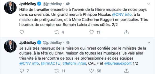 Après des bruits de couloir de plus en plus appuyés, l’officialisation a en effet été formalisée hier par le ministère de la Culture : Jean-Philippe Thiellay sera, à compter de lundi prochain, 2 décembre, le premier dirigeant du Centre national de la musique ; ce dernier verra officiellement le jour le 1er janvier 2020. L’intéressé a aussitôt confirmé sa nomination sur Twitter.