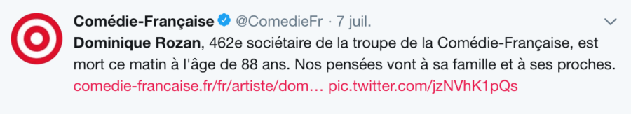 RIP. Dominique Rozan, sociétaire de la Comédie-Française depuis 1977