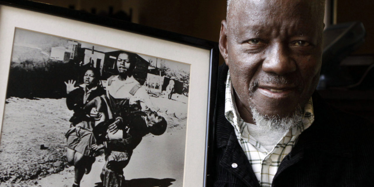 Sa photo montrant le jeune écolier Hector Pieterson mortellement blessé, porté par un étudiant en larmes, une jeune fille en uniforme d’écolière courant à leurs côtés après que les forces de sécurité eurent ouvert le feu sur des jeunes Noirs manifestant dans le bidonville de Soweto, le 16 juin 1976, a attiré l’attention du monde entier sur la brutalité du régime de l’apartheid.