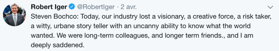 Les hommages pleuvaient lundi à Hollywood. « Aujourd’hui, notre industrie a perdu un visionnaire, une force créative, un preneur de risques, un conteur spirituel et urbain avec une capacité innée à deviner ce que le monde attend », a twitté Robert Iger, le directeur général de Disney.