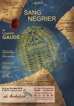 Sang négrier est la première nouvelle du recueil Dans la nuit Mozambique, publié par Laurent Gaudé en 2007. Mis en scène avec simplicité et pertinence par Khadija El Mahdi, le texte est bien servi par Bruno Bernardin.
