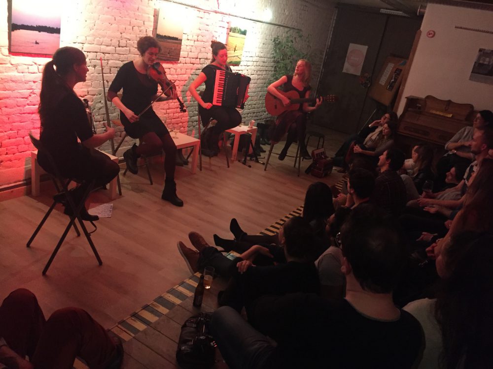 La nuit commence à tomber sur Bruxelles, en cette fin d’après-midi. Dans une rue calme du quartier d’Uccle, je pousse la porte d’un « comptoir culturel » et suis aussitôt accueilli par deux jeunes filles charmantes, fendues d’un beau et large sourire. On se sent immédiatement chez soi ! Une bière artisanale en main, et me voici attablé avec elles, Florence Marais et Charlotte Bouillot, la paisible et la volubile, conceptrices et fondatrices de L’Harmonium. Rencontre.