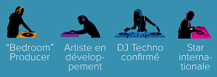 - l’artiste en développement, qui multiplie les sets dans les bars et fêtes privées, jusqu’à se poser la question d’un producteur ;